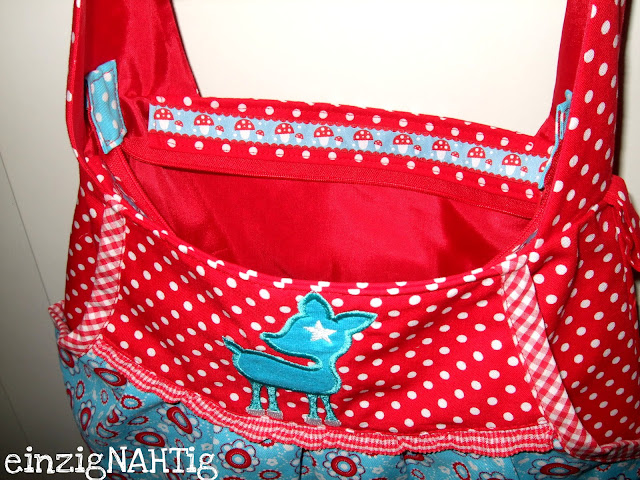 also adorns this bag again a band with D-ring, where for example a Taschenbaumler key or can fix it. The lining is like red lining, I think my little machine linings. So do I. By the way, again, the round version of Claire. There are a square!